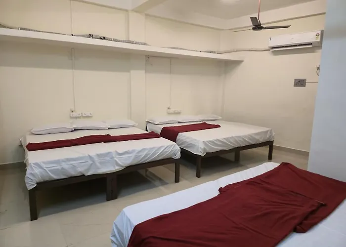 Das Hotel Giriyatra 1 Tiruvannāmalai mit klimatisierten Zimmern befindet sich 25 Minuten Fußweg vom Gesegneten Raben entfernt. Außerdem gibt es Parkplätze.